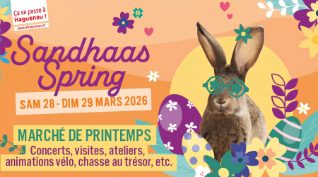 Le printemps s’installe à Haguenau et le centre-ville s’anime pour l’occasion ! Les samedi 28 et dimanche 29 mars, venez profiter de la 10ᵉ édition du Sandhaas Spring, un week-end plein de découvertes et d’animations.