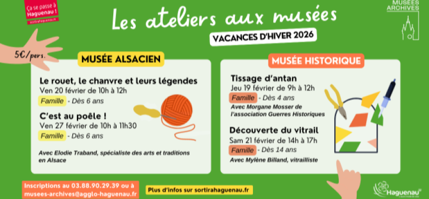 Passez de bonnes vacances hivernales en profitant des activités créatives proposées à la Médiathèque, au Musée Alsacien, au Musée Historique , mais aussi d’animations sportives pour bouger et se dépenser. Il y aura des rendez-vous pour tous à Haguenau !
