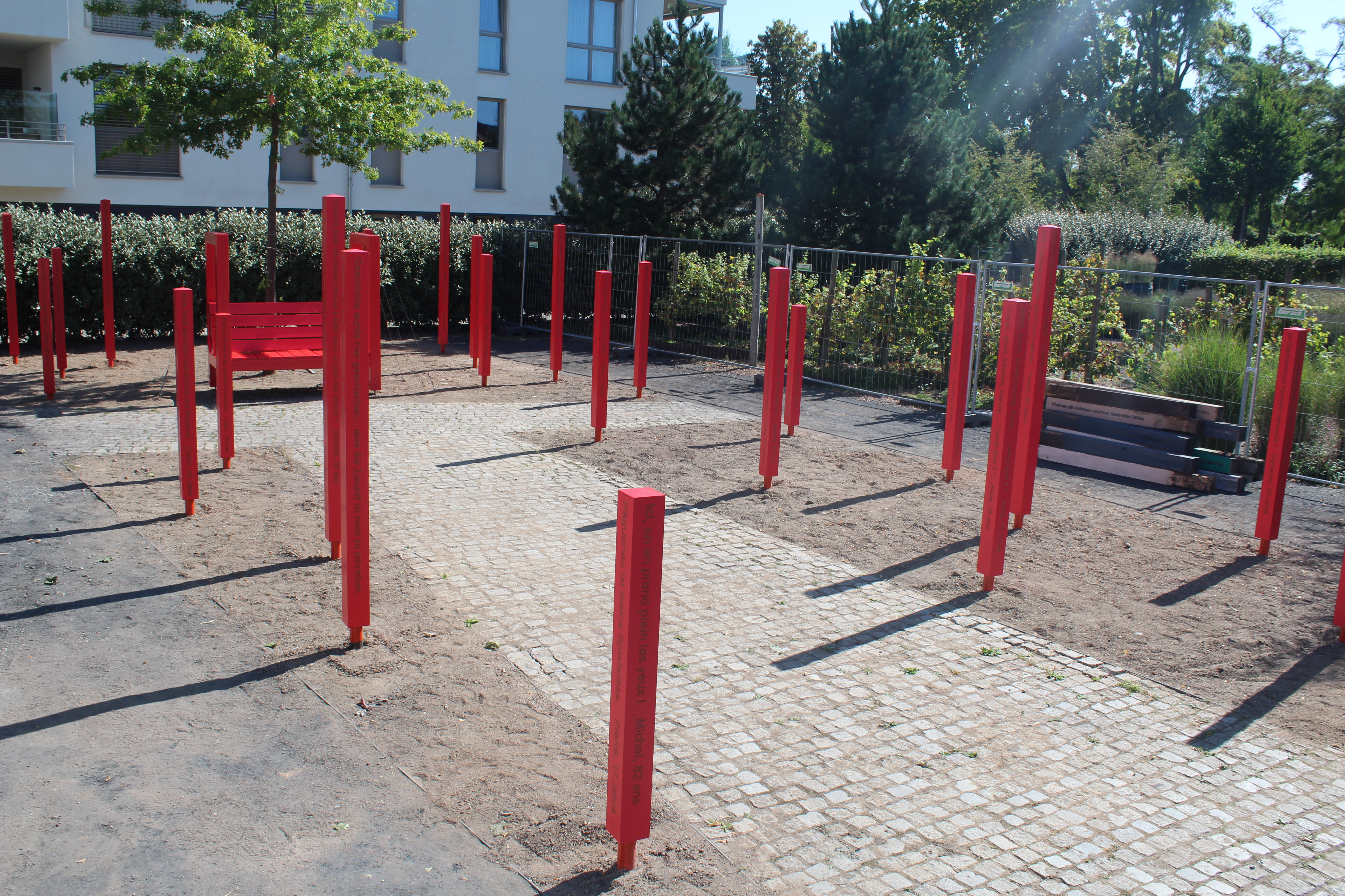 Pour célébrer le 60ème anniversaire du jumelage entre les deux villes, le jardin a été réaménagé et les totems gravés de textes écrits par des Haguenoviens, symbole de notre fraternité, ont notamment été refaits à neuf.